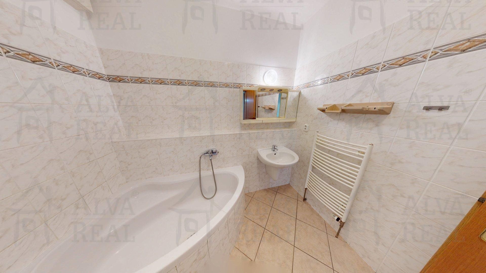 Do bytu se vstupuje z atria budovy, sestává se z komory, samostatného WC, prostorné koupelny s rohovou vanou i sprchovým koutem. Dále vybavená kuchyňská linka vč. spotřebičů (čtyřbodová varná deska, el. trouba zn. Gorenje, vestavěná lednice a mrazák, myčka zn. Zanussi). Předností tohoto bytu je terasa, na kterou je vstup z obývacího pokoje i z ložnice. Obě dvě místnosti jsou krásně prosvětleny a terasa vytváří přirozené odhlučnění.