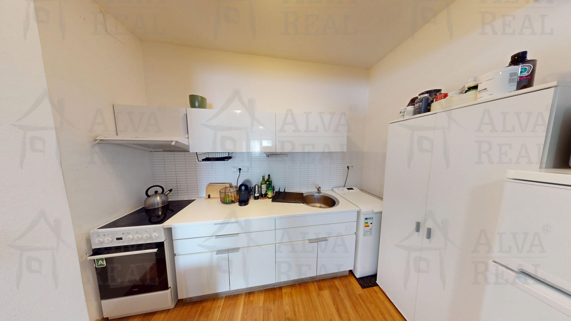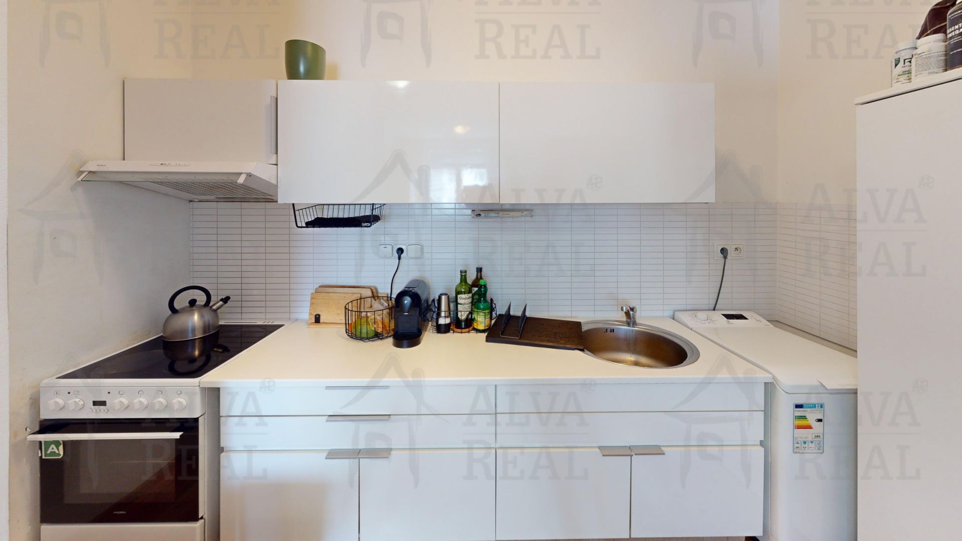 Vybavení: kuchyňská linka vč. spotřebičů (el. sporák, digestoř, lednice s mrazákem, pračka). Nábytek na fotografiích je současných nájemců, po dohodě je možné jej odkoupit.